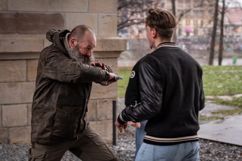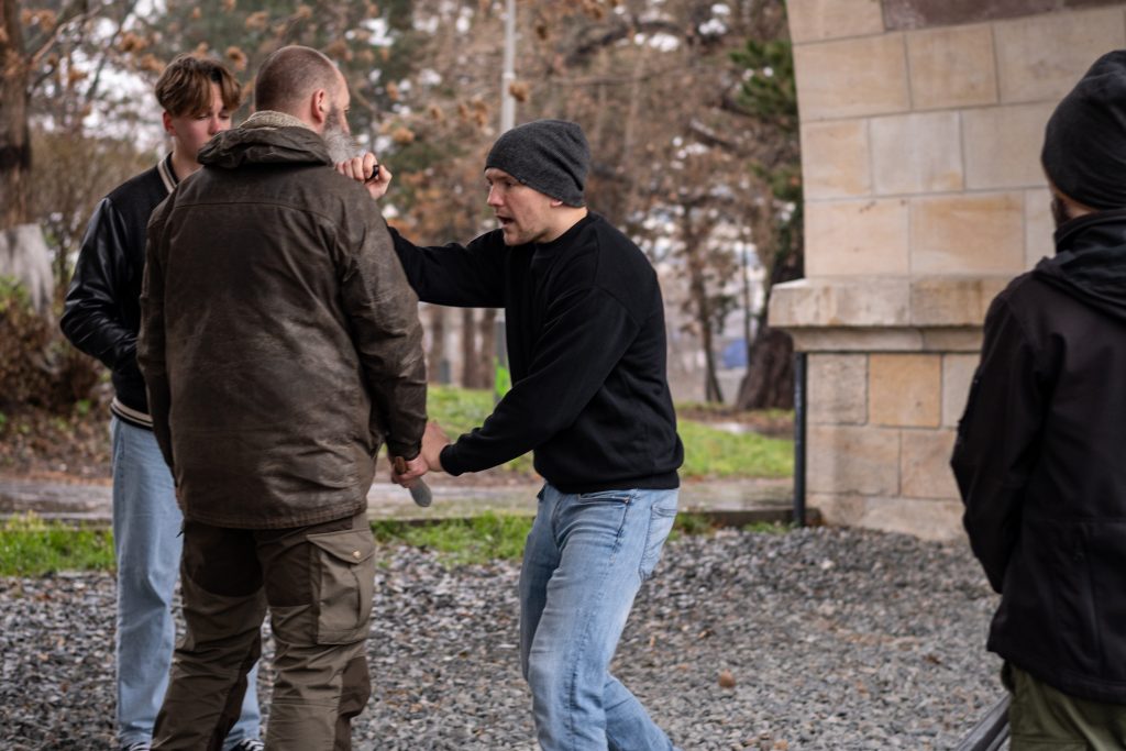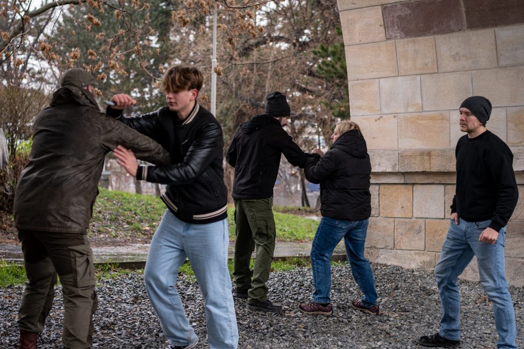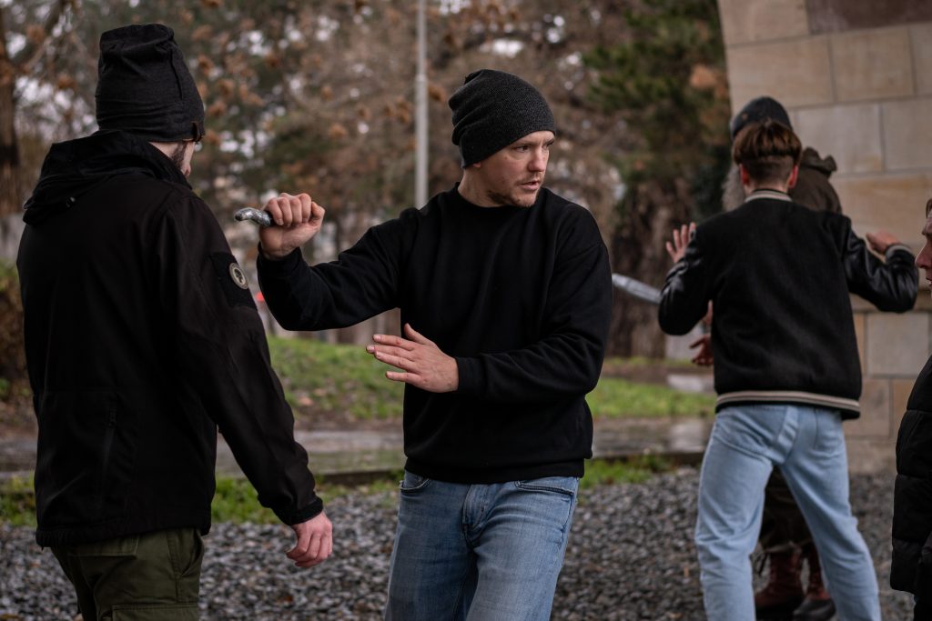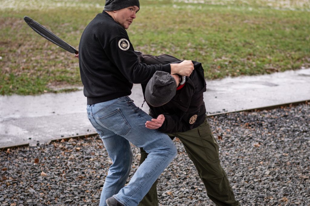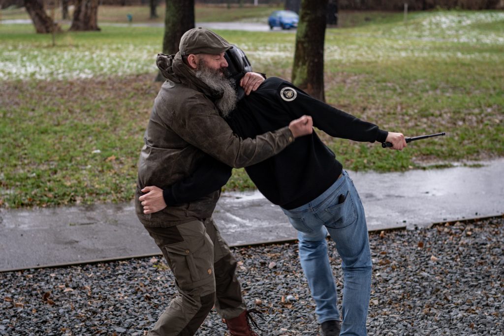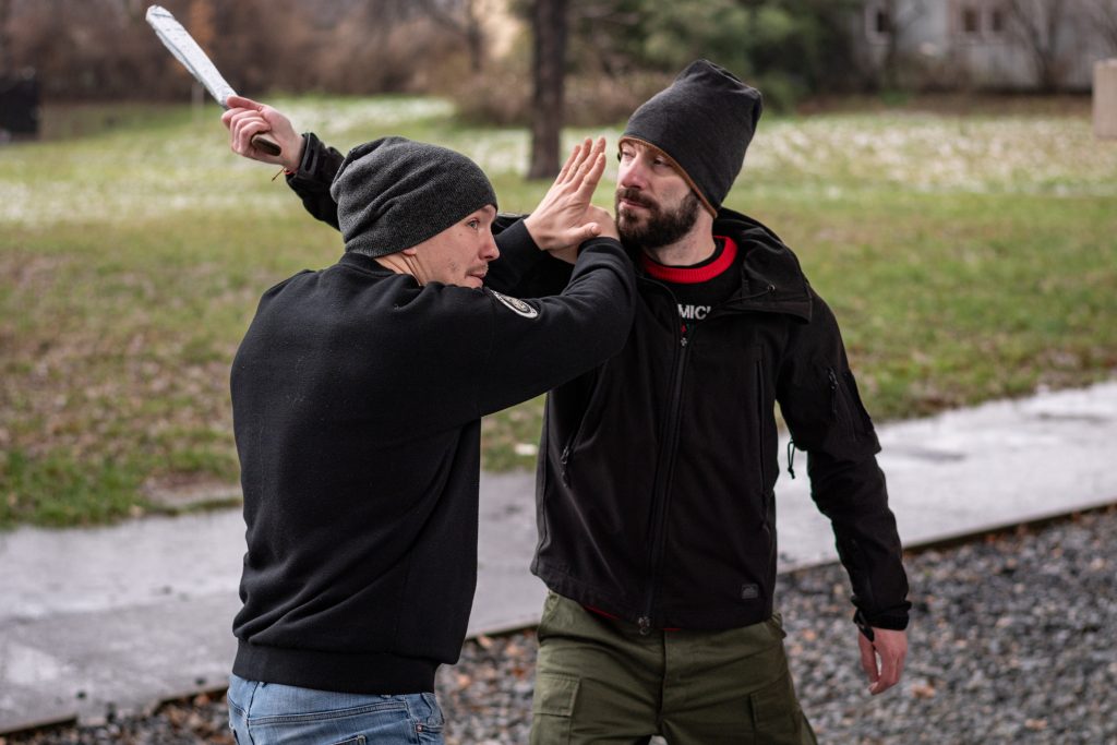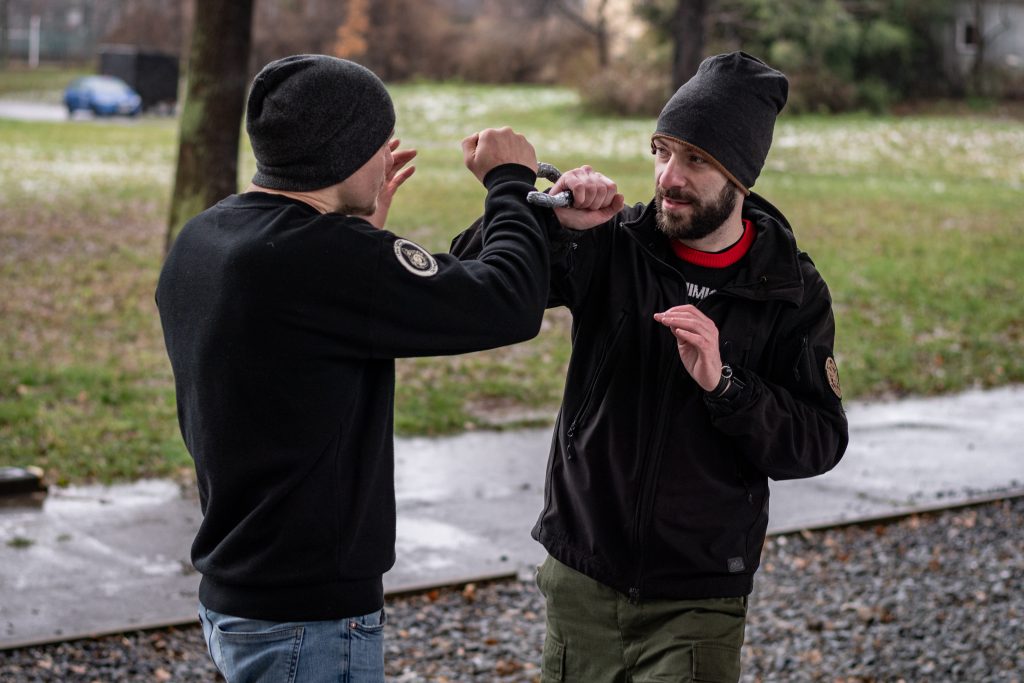 Foto: Venkovní trénink obrany proti mačetě/teleskopickému obušku na Štvanici
