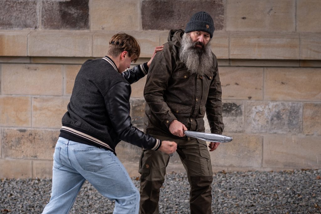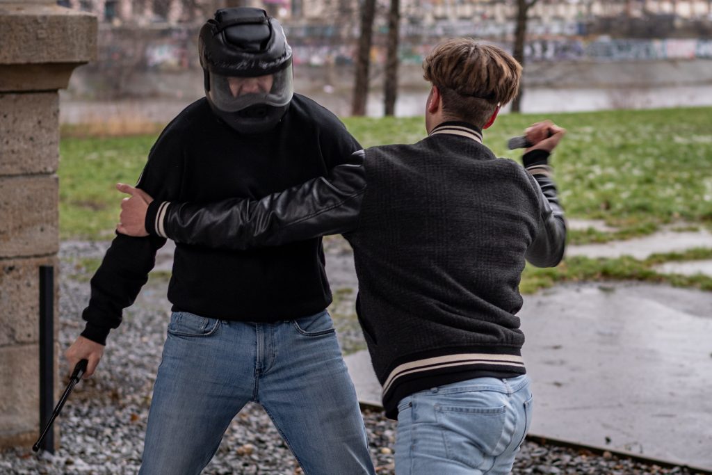 Den před Štědrým dnem jsme se na pražském ostrově Štvanice probrali další z témat možných napadení. A to středně dlouhou zbraní – mačetou, nebo teleskopickým obuškem.